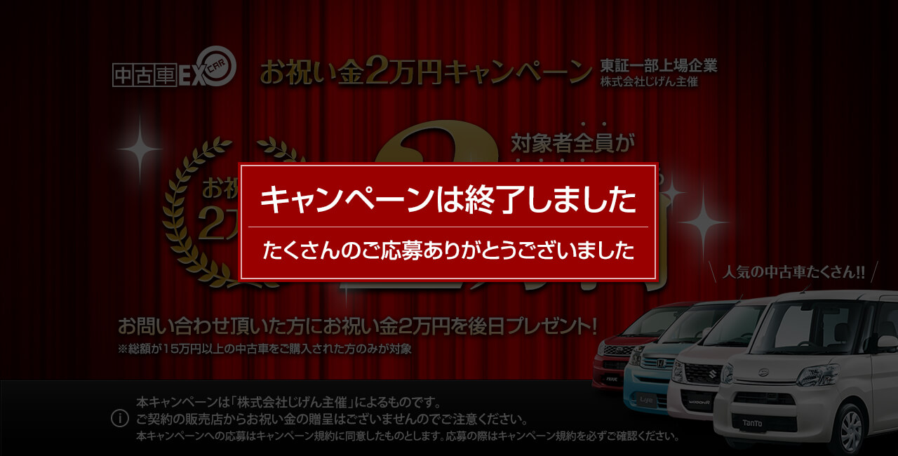 ※ 2016年11月8日21:00~2016年12月5日17:00までお問い合わせした方はおクルマ購入応援キャンペーンの申請対象となります。